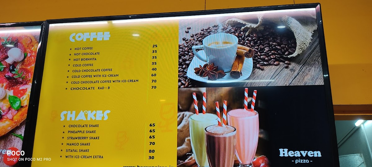 And for those looking for a pick-me-up, Heaven Pizza and Cafe serves a selection of delightful coffees, including Hot Chocolate and Cold Coffee with Ice Cream. These beverages are the ideal companions to your meal, whether you're winding down or gearing up for an exciting day ahead.
